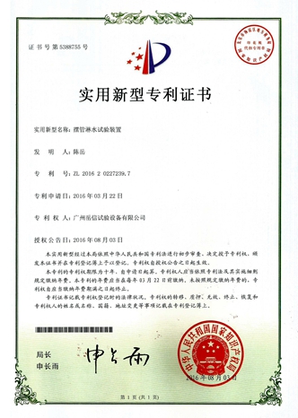• 滴水試驗裝置-實用新型專利證書【岳信公司】